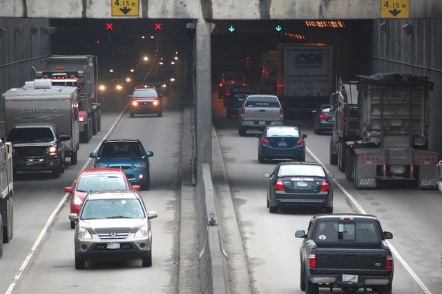 PROJECT Background The Massey Tunnel has counter-flow lanes in effect to help keep traffic moving during morning and afternoon rush hours. 3 lanes northbound, 1 lane southbound and vice versa. Solution ONROADLED’s system was installed in 2000 with an upgrade to intelligent IPH2000i power supplies after 11 years of successful operation. The application comprises 620 bidirectional Smartstud on-road markers with yellow LEDs, 4 power supplies and 5.6 km of cable.