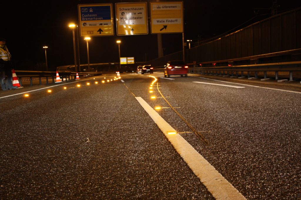 3i Traffic’s wireless/inductive powered warning system with flush-mounted iiiLEVEL LED road marker is capable of dynamically change the status of the system. Its technology benefits, such as no corrosion, no wired connections and proven reliability combined with its intelligent functions, such as flashing, dimming, sequencing and being uniquely controllable made the decision easy for the traffic authority to install 39 iiiLEVEL™ LED road marker on the B6 in Bremen.