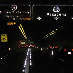 Dynamic lane system in Los Angeles on the iconic I-110, operated by Caltrans (California Department of Transportation), the world’s largest traffic authority. Installed in 2009. The system uses Smartstud intelligent LED on-road markers. The ONROADLED system delineates lanes and also transmits data that will help induce the switch from one lane to two, including sending messages to electronic roadway signs to alert motorists of the lane operation.