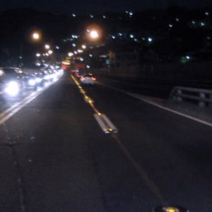 Dynamic lane system in Keelung, Taiwan. Installed in 2002. The system uses Smartstud LED on-road markers. The ONROADLED system controls reverse lanes in a tidal flow.